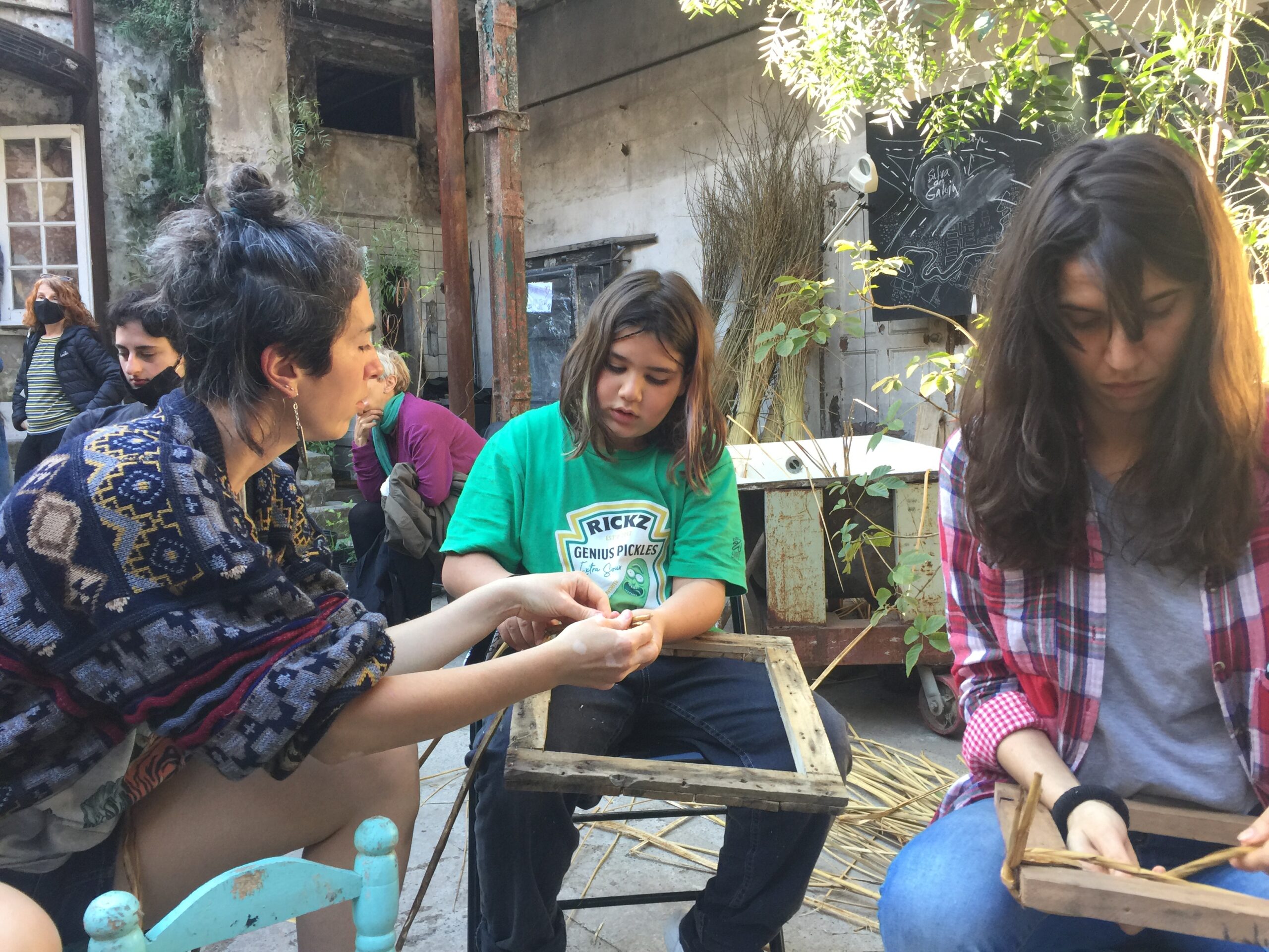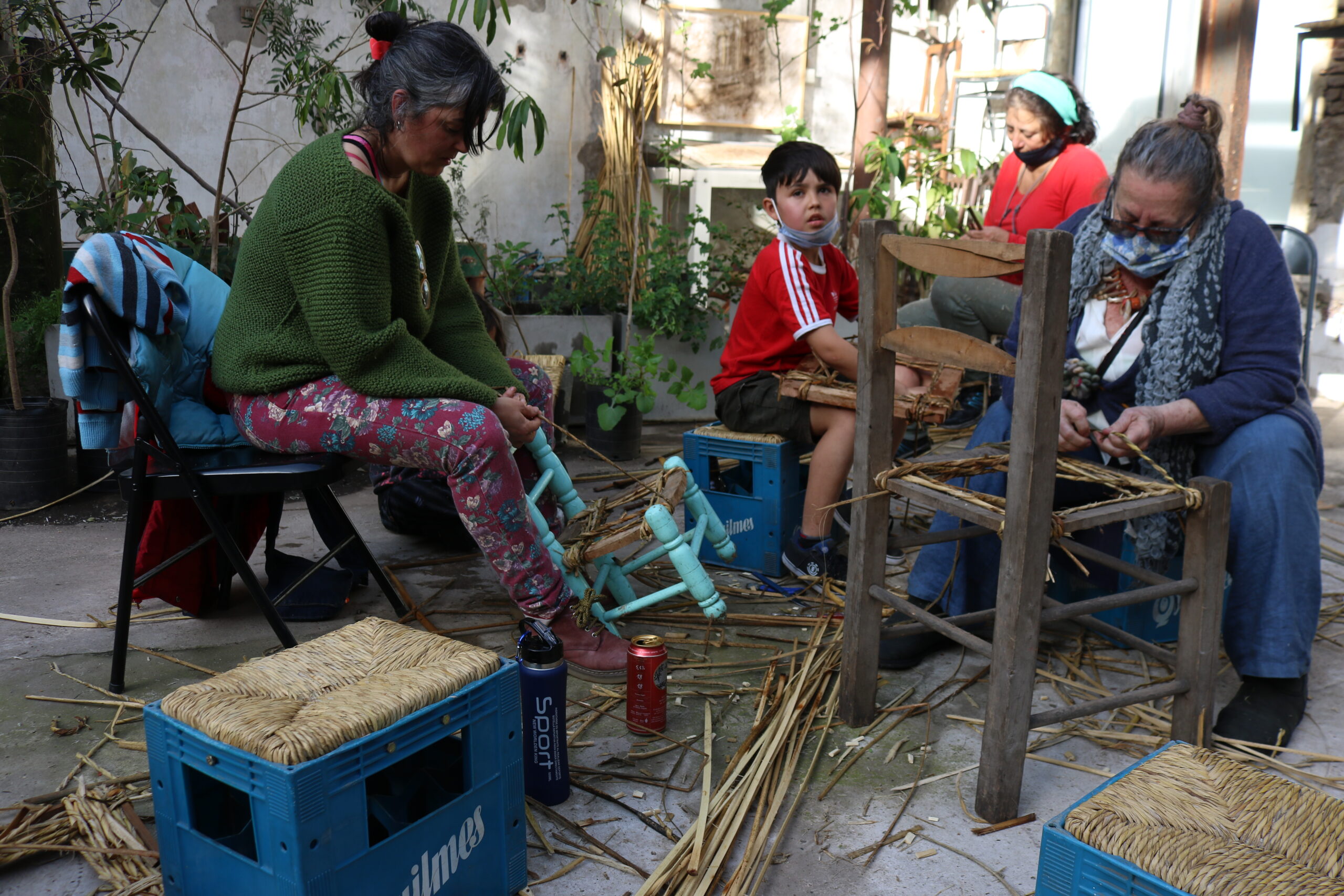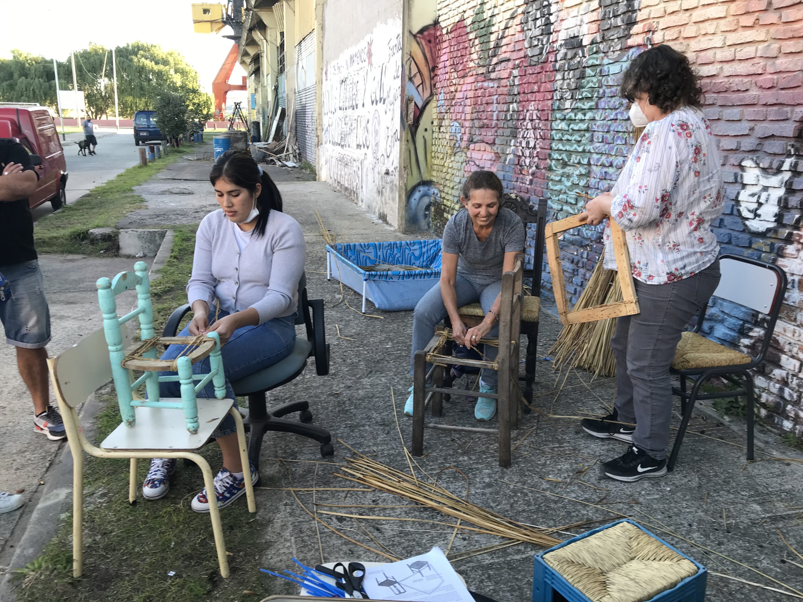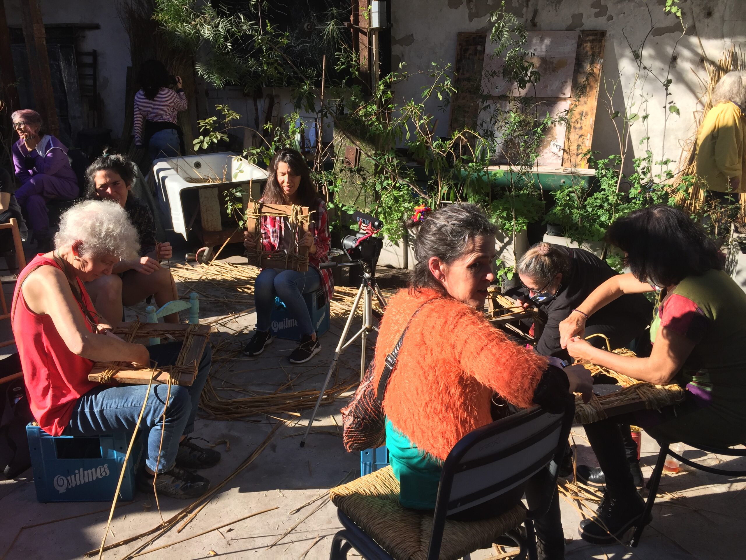 Esta acción se lleva a cabo a partir del montaje de un taller itinerante y público, en áreas fuertemente antropizadas, donde se exhiben y se rehabilitan las sillas recolectadas con la idea de replantear saberes tradicionales de la costa a partir de invitar a aprender la técnica el proceso del tejido con junco. Este proceso compartido resulta generador de dialogo en la comunidad donde se lleva adelante la acción . Estos encuentros de taller son registrados en video, generando de esta manera un documento de opinión pública a partir de las reflexiones que surjan en las conversaciones. La edición del material funciona como a la vez, como un material educativo donde queda registrado el proceso técnico del enjuncado.