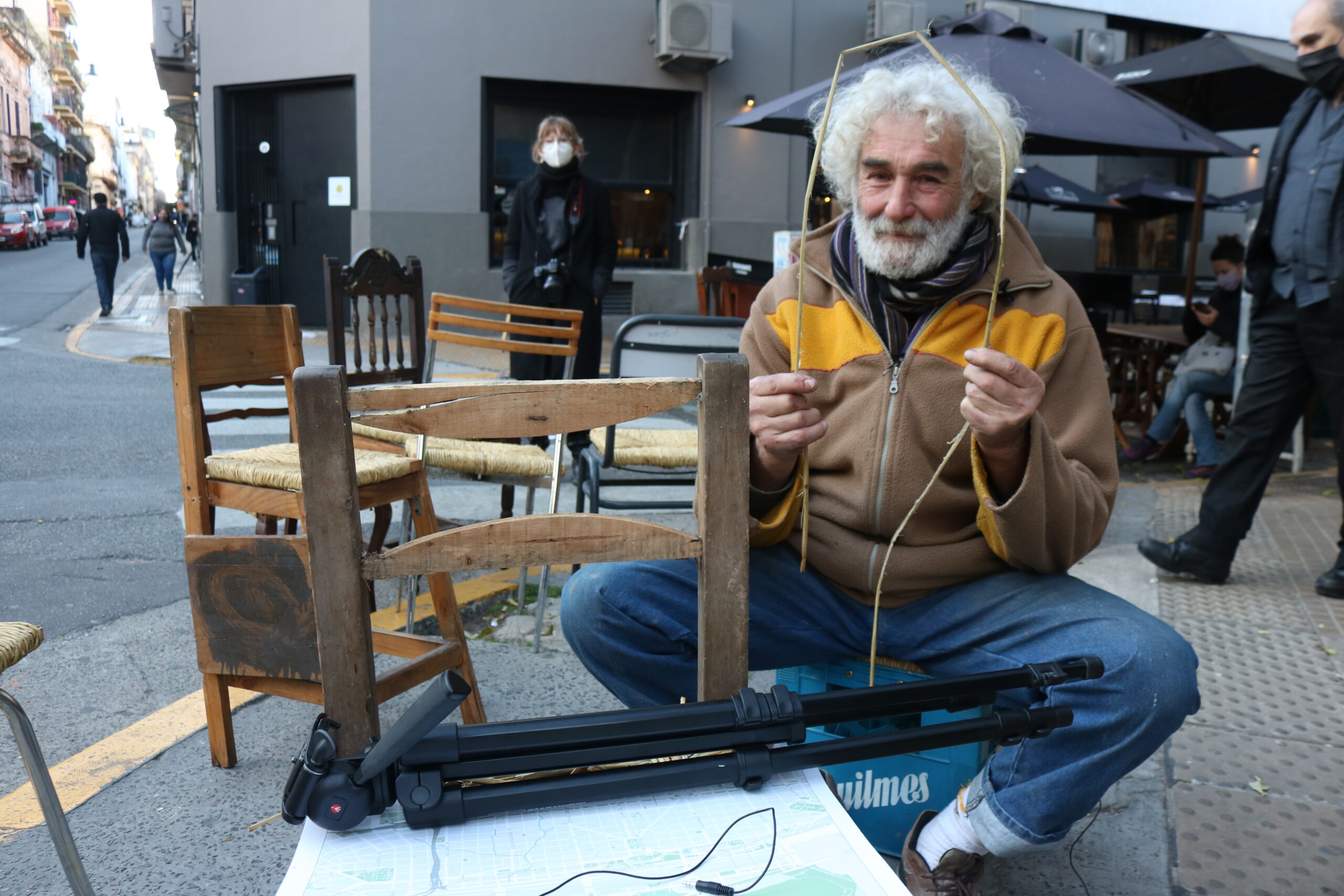 Esta obra sustentada en el trabajo de años con productores y artesanos de la cuenca baja del Río de La Plata parte de la idea de replantar saberes tradicionales de la costa en áreas fuertemente antropizadas. Replicando la transmisión de saberes. Es por ello que la obra contempla el montaje de un taller abierto para transmitir la técnica y resaltar las conversaciones en torno al tejido a partir de su registro y edición como documento de las voces de la comunidad donde se lleva a cabo el proyecto.Esta obra se ocupa tanto de la investigación, creación y producción cultural y medioambiental como de la actuación en los procesos productivos y, finalmente, de las posibilidades creativas que suscitan estas coyunturas contemporáneas. Pretende aportar nuevas visiones que actúen como generadores de pensamiento y actitudes. No se trata sólo de plantear interrogantes sobre nuestra forma de explotar los recursos, sino también sobre nuestra forma de pensar, de trabajar, de percibir la realidad y transformarla.El origenLa obra nace a partir de un histórico comercial de los años 70, “La silla”, que se basaba en la idea de que los argentinos no sabemos hacer sillas, de modo que no nos queda más remedio que importarlas.